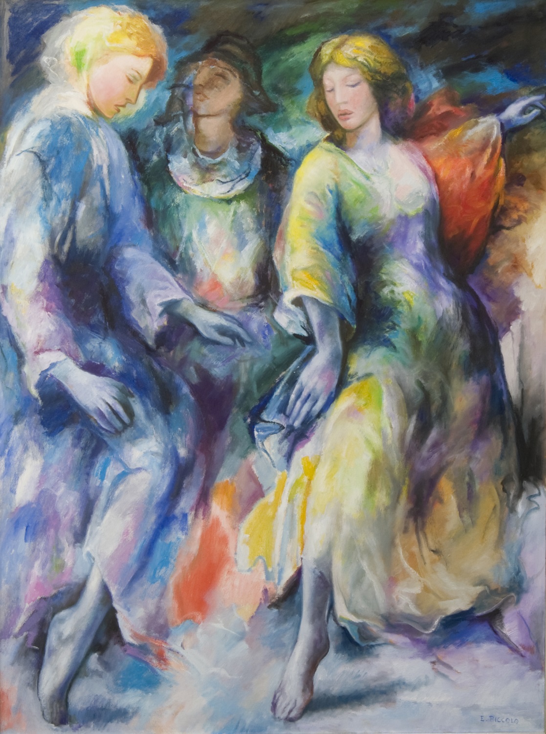 Tra le opere della mostra, curata da Francesco Ciaffi, si segnalano La conta delle stelle (1999) e Giorno di riposo (2009) di Enrico Benaglia, Natura da pc accesi (2011) e Come alveari di Angelo Colagrossi, Venere rapita (1997) e Cavalli alla sorgente (1996) di Roberta Correnti, Giro girotondo (2006) e Il mare dagli occhi (2004) di Mario Ferrante, Les autres (2004) e Romanza in goccia d’acqua blu (2018) di Piero Mascetti, Il bacio (2015) di Mauro Molle, Fauno e ninfe (2005) e Passo di danza con Arlecchino (2002) di Ernesto Piccolo, NYC by night (2017) e Stazione (2018) di Mariarosaria Stigliano, ed infine Eco (2009) e La porta di Itaca (2005) di Lino Tardia.