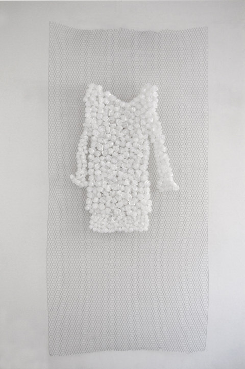 Nella sala 2 ci saranno 10 quadri dalla serie “Cenerentola”in cui l’indumento fisico, trattato con resine, è stato sovrapposto alla pittura di figure femminili in un immaginario onirico.