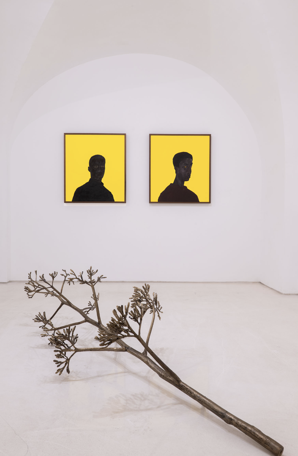 Concepiti per questa mostra, i ritratti di corpi scuri affiorano da sfondi gialli di gomma. Queste figure interrogano le ombre persistenti del dominio coloniale. Le opere sono frammenti di una storia ancora da scrivere, che trova voce in Italia attraverso quest’esposizione.