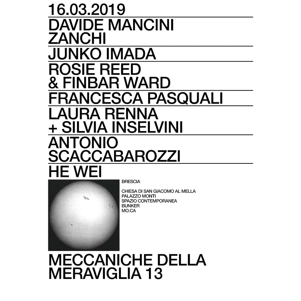 Per il terzo anno, Meccaniche della Meraviglia, manifestazione culturale con la regia di Albano Morandi e in collaborazione con la Galleria AplusB di Dario Bonetta, Stelva Artist in Residence, programma di residence per artisti che si svolge tra Italia e Svizzera curato da Gianvirgilio Cugini, Palazzo Monti di Edoardo Monti, la Galleria Marignana Arte di Venezia, Acme Art Lab (collettivo che vede riunite le giovanissime curatrici Alessia Belotti, Melania Raimondi, Camilla Remondina) e Ilaria Bignotti, rivolta alla riscoperta, attraverso installazioni artistiche sito-specifiche, di monumenti ed edifici architettonici del territorio, si articola nella città di Brescia, andando ad aprire spazi solitamente non accessibili e non conosciuti al grande pubblico: