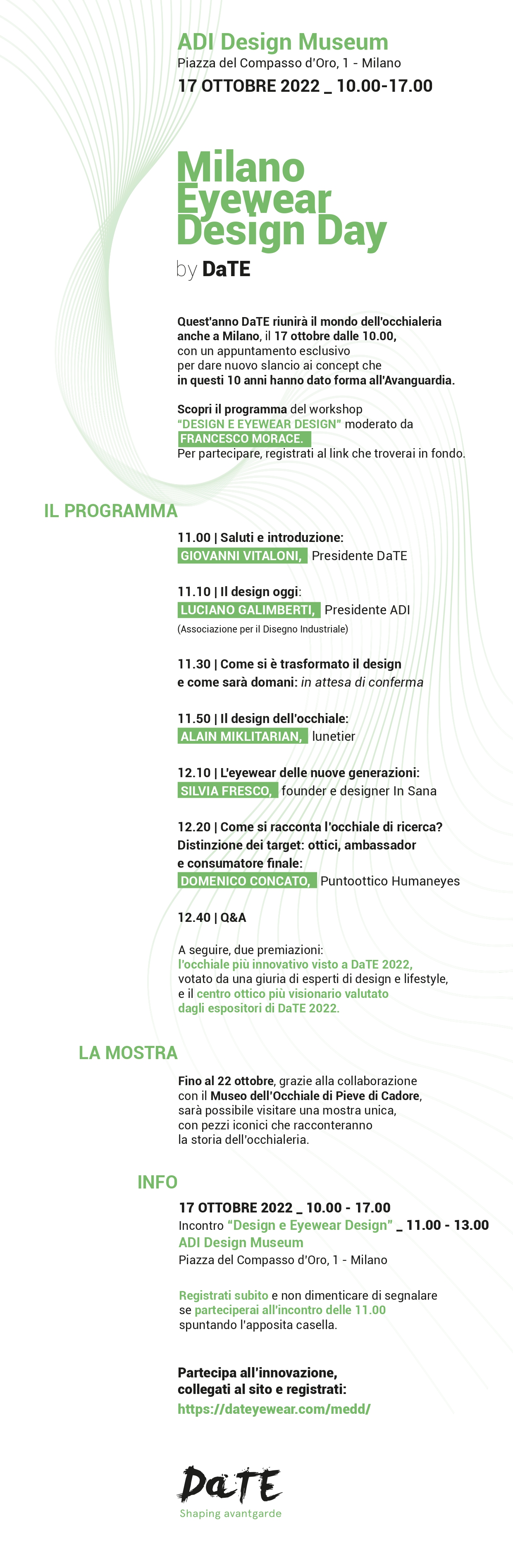 Tutte le informazioni sulla pagina dell’evento https://dateyewear.com/medd/