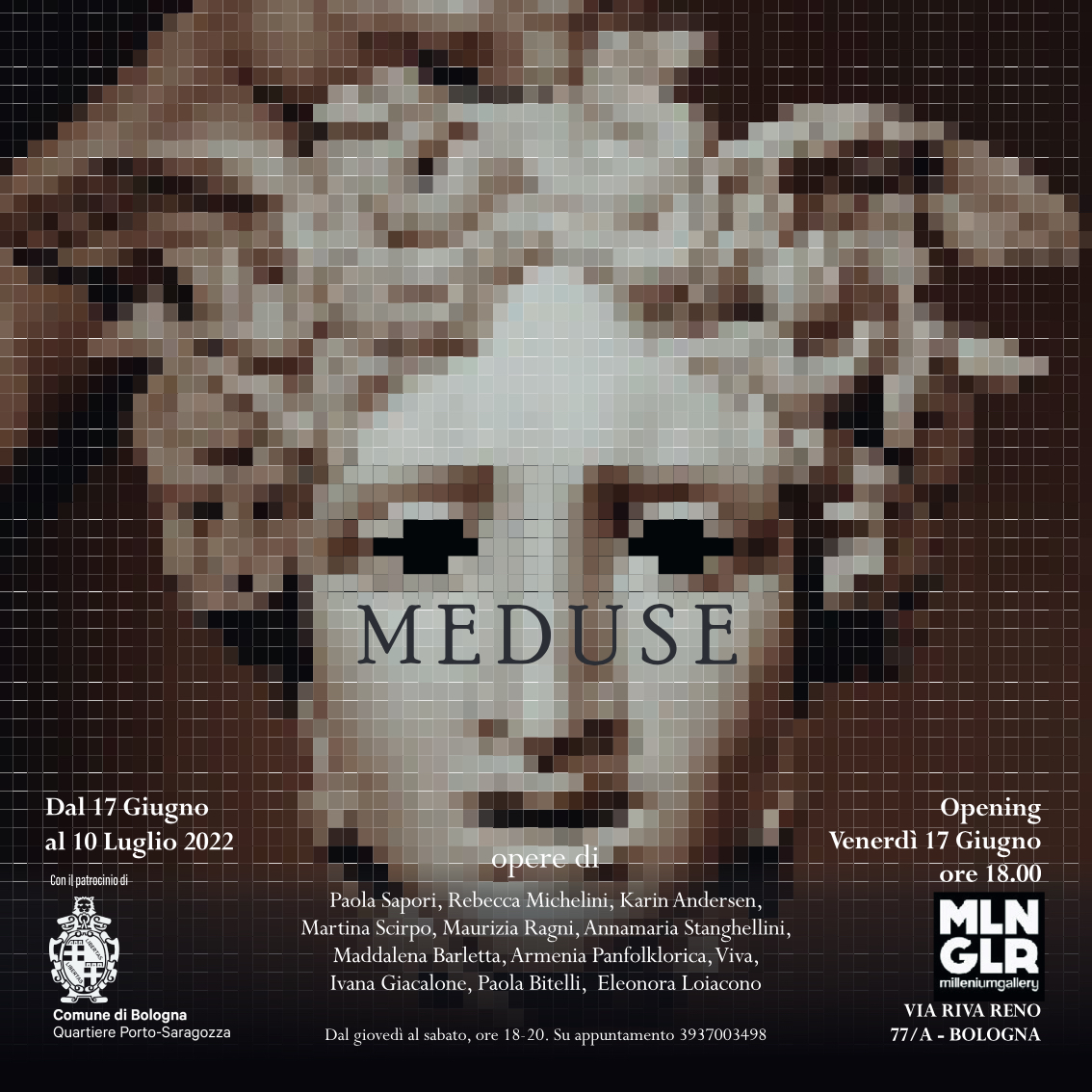 Venerdì 17 giugno MILLENIUM GALLERY ha il piacere di ospitare la mostra collettiva “Meduse”. Il progetto “Meduse” nasce dalla volontà di un gruppo di artiste, di generazioni diverse, di dare visibilità a un’idea e svilupparla attraverso poetiche, stili, tecniche e modi di sentire del tutto soggettivi, improntati all’eterogeneità e, perché no, all’ambiguità dettata dallo stesso tema.