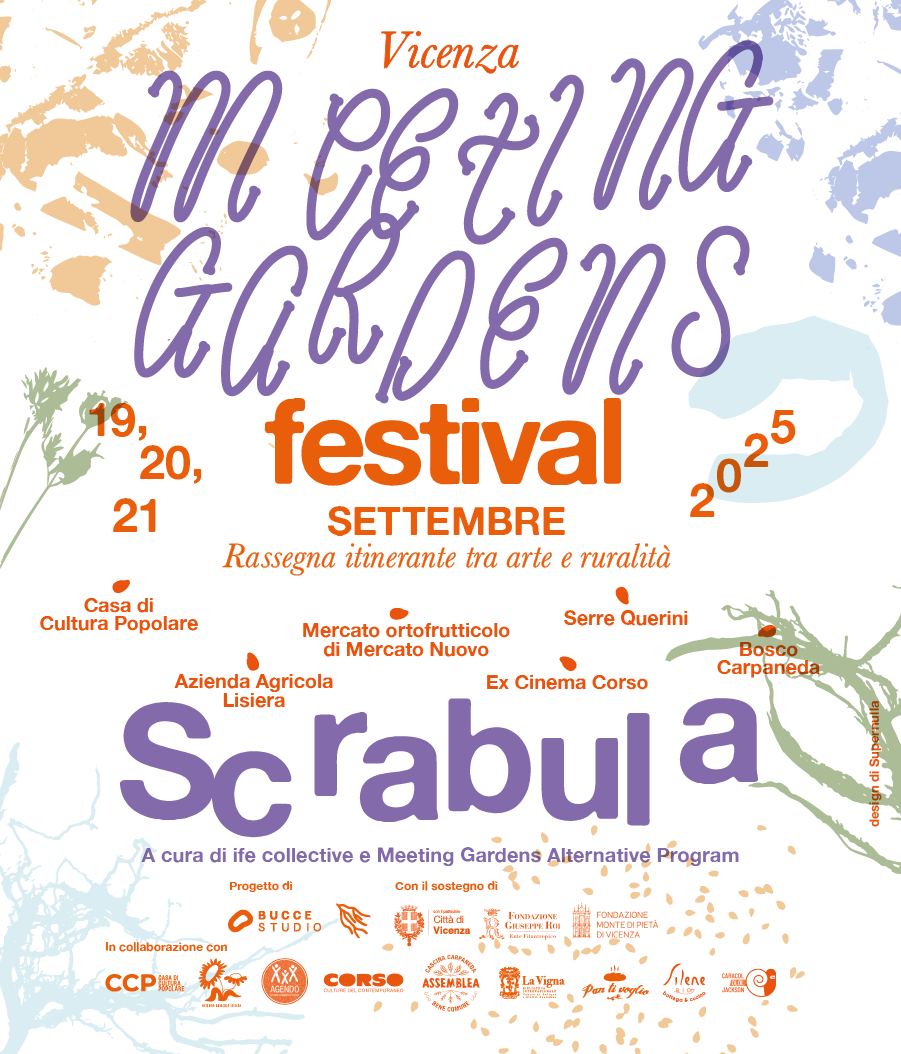 Meeting Gardens Festival. Scrabula è la terza edizione della rassegna multidisciplinare itinerante vicentina volta a innescare immaginari alternativi a partire dalla relazione profonda con orti e giardini inseriti nel contesto degli ecosistemi e delle comunità territoriali.