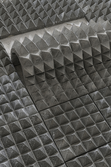Il progetto – concepito per lo Spazio Molini come intervento site-specific – indaga l’apparente familiarità dei motivi e dei pattern dello spazio pubblico, attivando un’indagine critica sul tema dell’architettura ostile, intesa come espressione di un design “paranoico e ansioso” (Robert Park) confliggente con l’esperienza corporea degli individui nello spazio urbano, al punto da comprometterne le libertà personali e politiche.