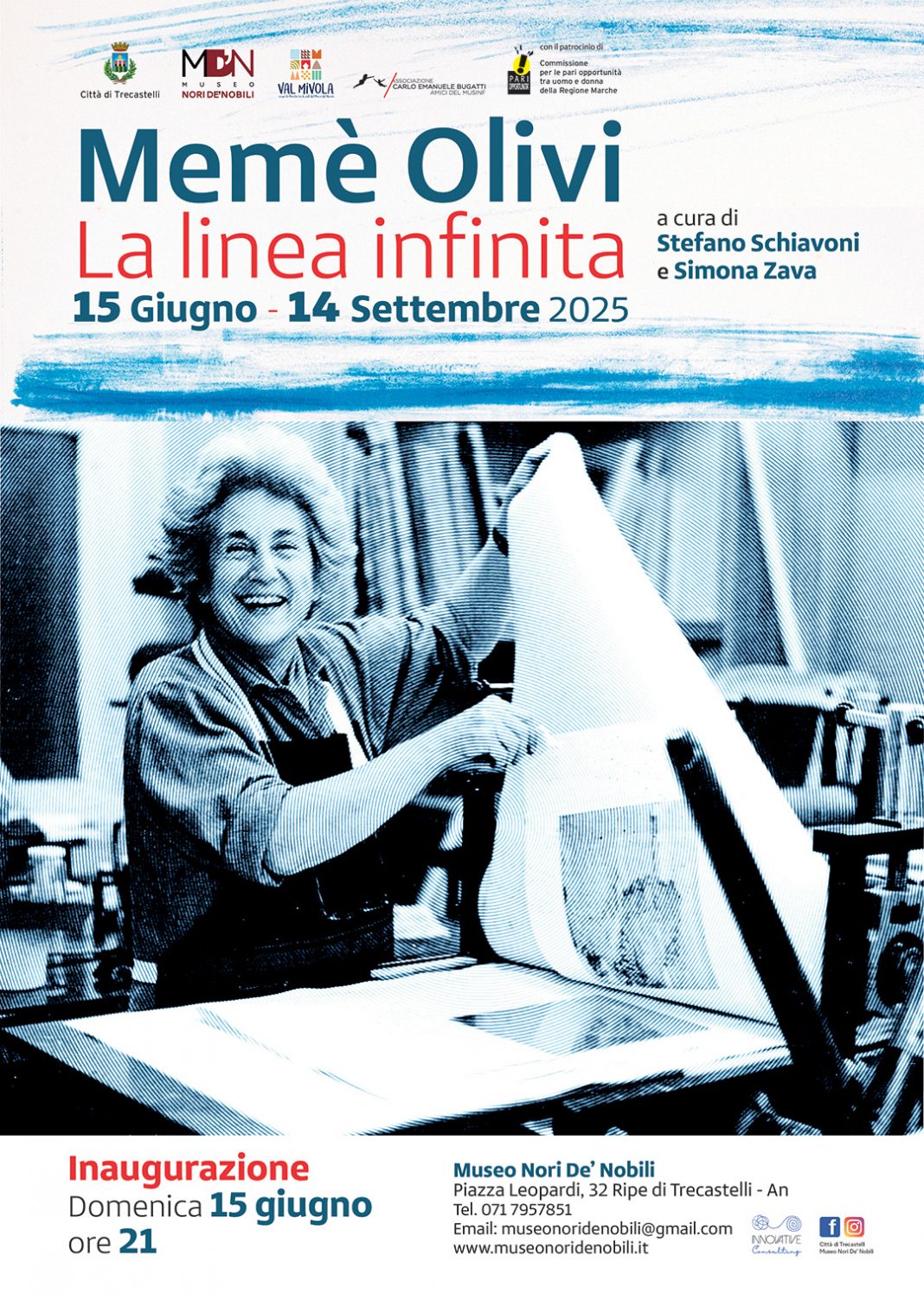 Domenica 15 giugno 2025, alle ore 21, si terrà al Museo Nori De' Nobili della Città di Trecastelli (Ancona) l'inaugurazione della mostra di Memè Olivi La linea infinita, a cura di Stefano Schiavoni e Simona Zava.