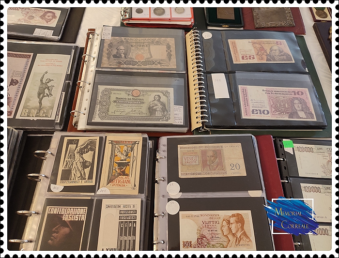 monete antiche e moderne, francobolli, banconote italiane ed estere, decorazioni militari, cartoline, storia postale, stampe, orologi, immagini sacre, carte telefoniche, quotidiani, locandine, libri, fumetti, figurine, giocattoli, oggettistica varia, accessori e raccoglitori per collezioni.