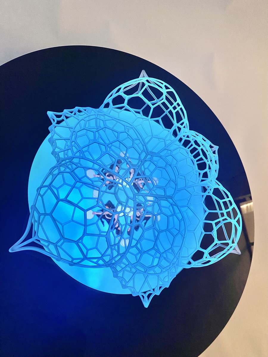 La difesa dell’ambiente assume nelle video sculture di Katja Loher le forme di un’ispirata magia. Partendo da verità scientifiche l’artista riesce a dare vita a opere d’arte che si servono di un linguaggio estetico magnetico e suggestivo, capace di far scivolare l’osservatore in un mondo di stupefacente bellezza. Per dare forma alle sue video sculture, un mix di vetro soffiato e monitor, Loher parte dall’osservazione di fotografie e visioni al microscopio del plancton, alle quali sovrappone complesse coreografie. I corpi di uomini e donne, ripresi dall’alto, danno vita a una danza che simula il movimento di elementi microscopici, fluttuanti e vivi.
