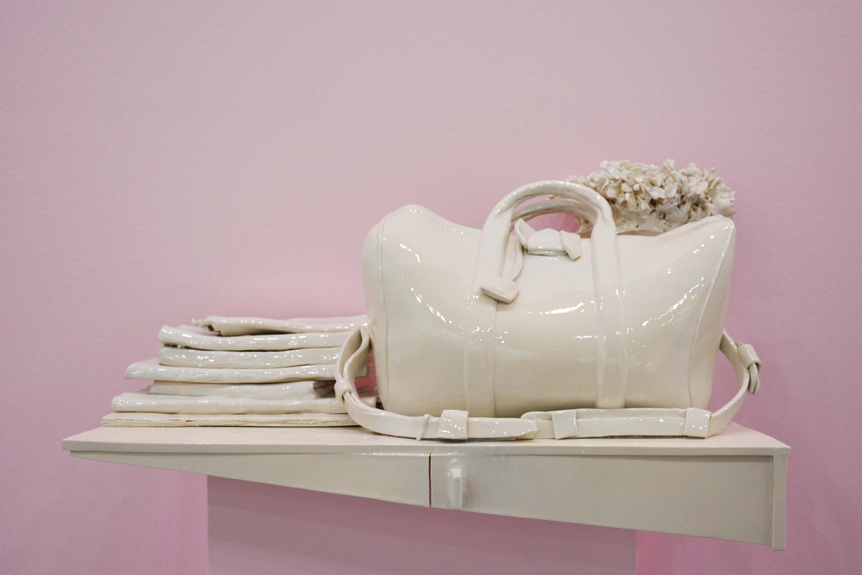 La materia e il tema segnano una linea che unisce i lavori in mostra: un focus sulla ricerca in ceramica (avvicinata molto prima che diventasse mainstream) che passa attraverso costruzioni frammentate e parzialissime rappresentazioni di mondi.