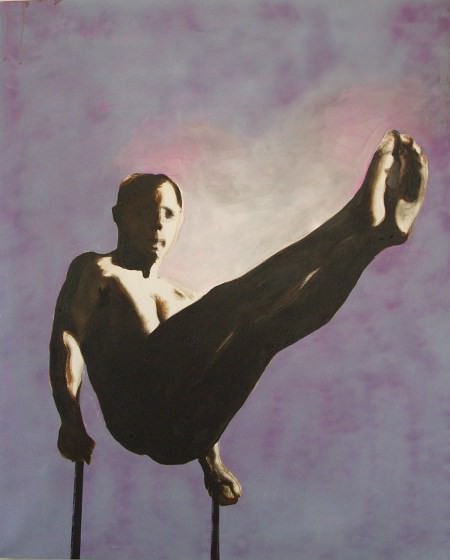 È il corpo, e la ricerca di un probabile limite, il terreno d’indagine del giovane artista di origini campane che, attraverso il colore e prospettive insolite, sembra voler superare anche il limite dello spazio circoscritto della tela, la bidimensionalità, alla ricerca di una nuova dimensione che avvicini sempre più lo spettatore al senso del movimento che si sprigiona a partire dalla figura umana.
