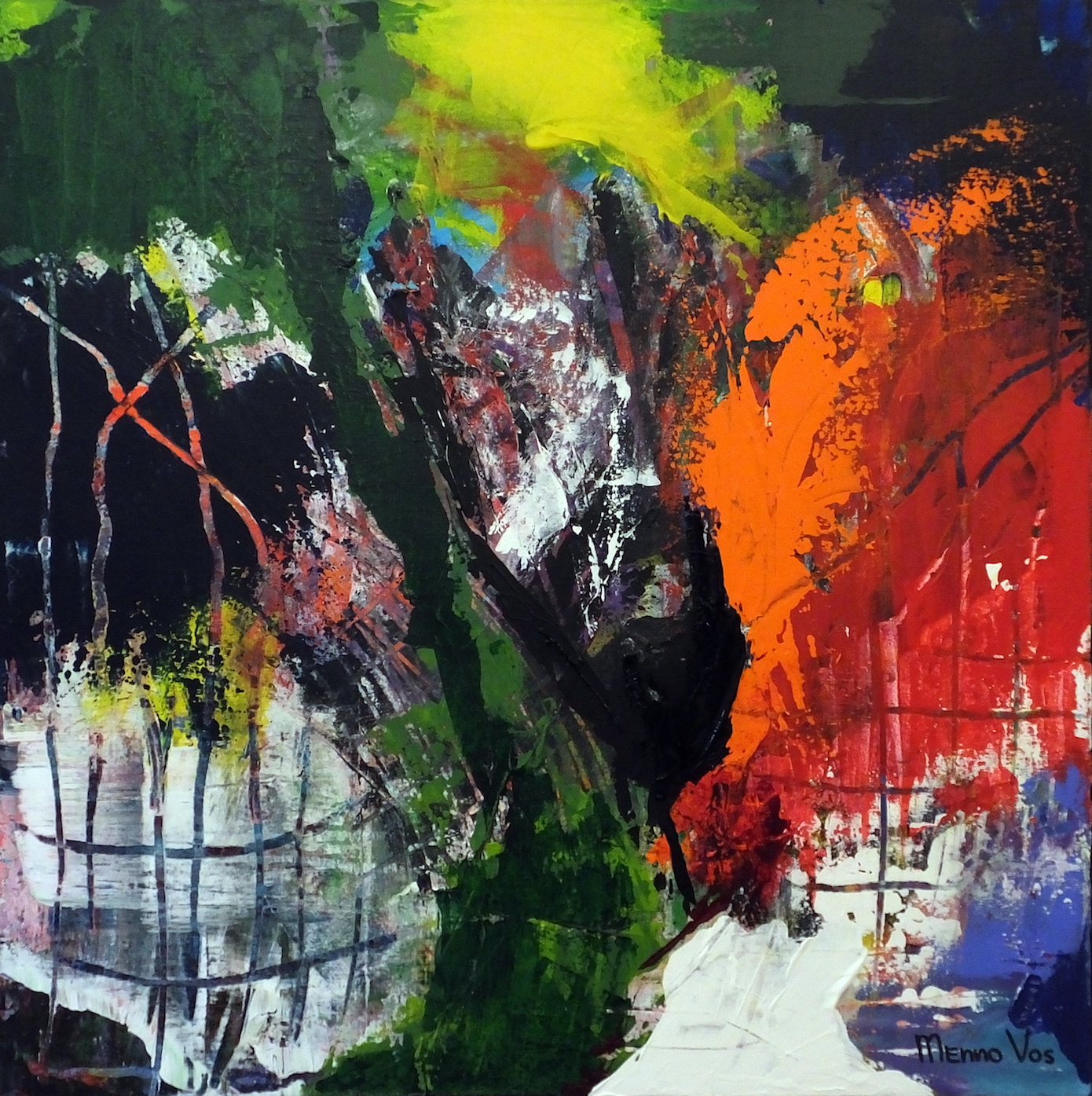 L’arte di Menno Vos è iniziata con la fotografia e l’amore per i viaggi. Poi ha sperimentato la pittura astratta e oggi si considera un pittore puramente astratto, trovando ispirazione nelle persone, nelle immagini e nelle emozioni che prova durante i viaggi