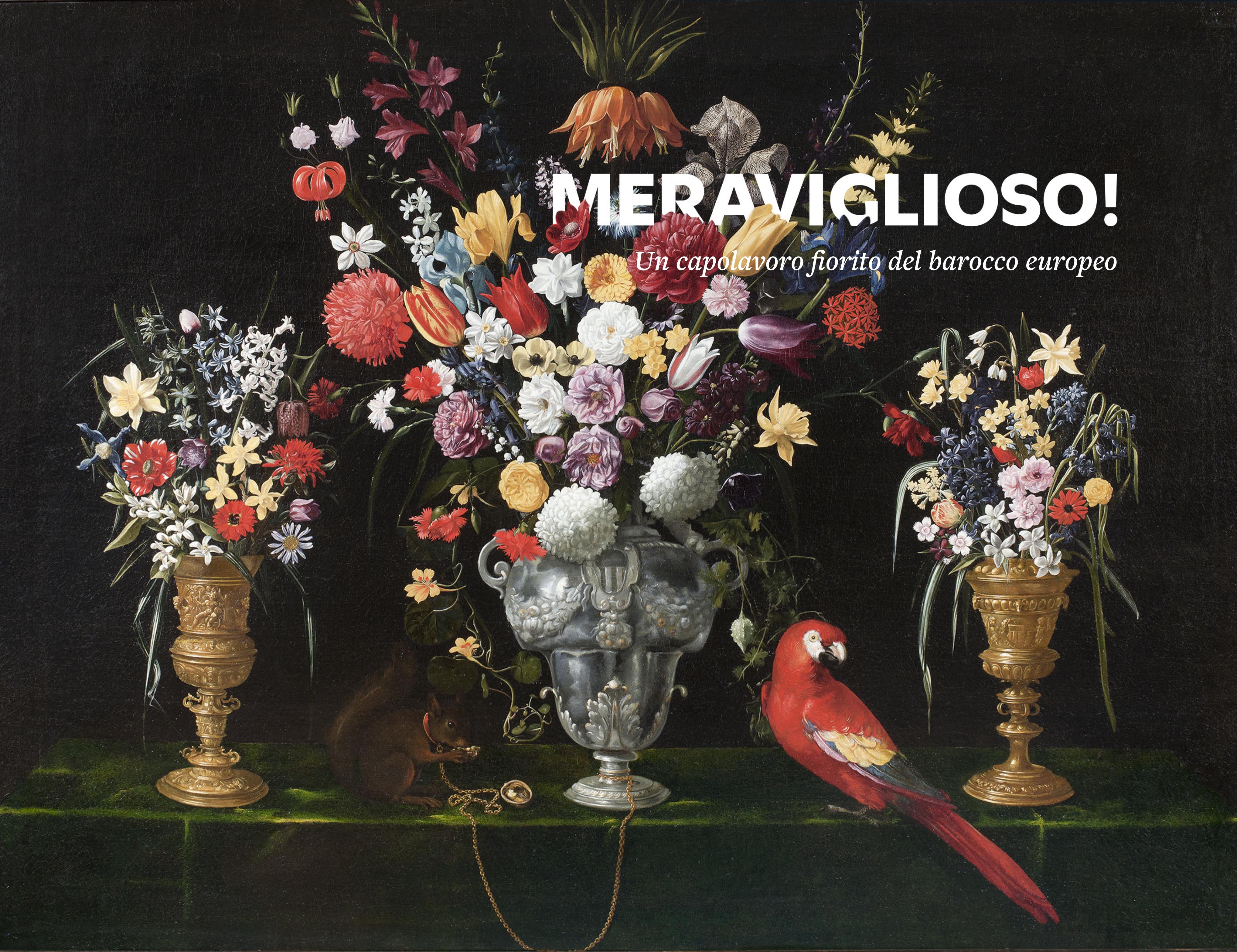 La mostra Meraviglioso! Un capolavoro fiorito del barocco europeo, allestita nella nuova sala delle temporary exhibitions all’interno della Casa Museo, presenta i risultati delle indagini storico-artistiche, stilistiche e botaniche condotte sulla grande tela con Natura morta con tre vasi di fiori, scoiattolo e pappagallo su un tavolo (1625-1630 circa), entrata in collezione Zani nel 2004. L’opera pur non presentando un’attribuzione certa fu scelta da Zani esclusivamente per la sua straordinaria qualità pittorica. Mirabile per tecnica e impatto visivo la scenografica tela, già attribuita nel 1999 ad Astolfo Petrazzi, fu esposta nel 2016 alla Galleria Borghese di Roma come opera di un pittore caravaggesco attivo nel terzo-quarto decennio del XVII secolo. L’opera, tanto misteriosa quanto scenografica, è stata sottoposta negli ultimi mesi ad una serie di indagini scientifiche, ricerche stilistiche e botaniche che hanno portato a nuovi risultati, presentati proprio in occasione di questa nuova esposizione. Ben 63 essenze botaniche sono riprodotte nel dipinto che, per affinità stilistiche e compositive con altre opere, viene oggi ricondotto alla produzione di un artista attivo in Italia, probabilmente spagnolo, entro il terzo decennio del XVII secolo.