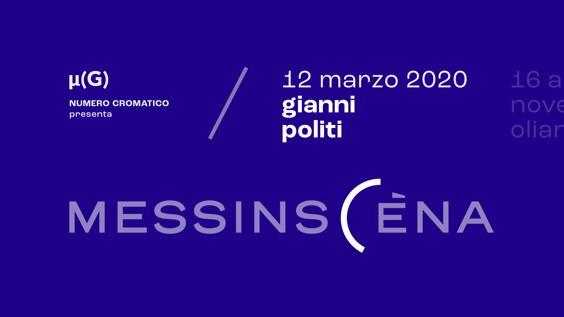 Messinscèna è un progetto di Numero Cromatico che vuole analizzare le attuali realtà artistiche attraverso un dispositivo di mostre one shot. Ogni appuntamento è dedicato ad un unico artista. Verrà esposta una sola opera che resterà in mostra per cinque ore, dalle 19:00 alle 00:00.