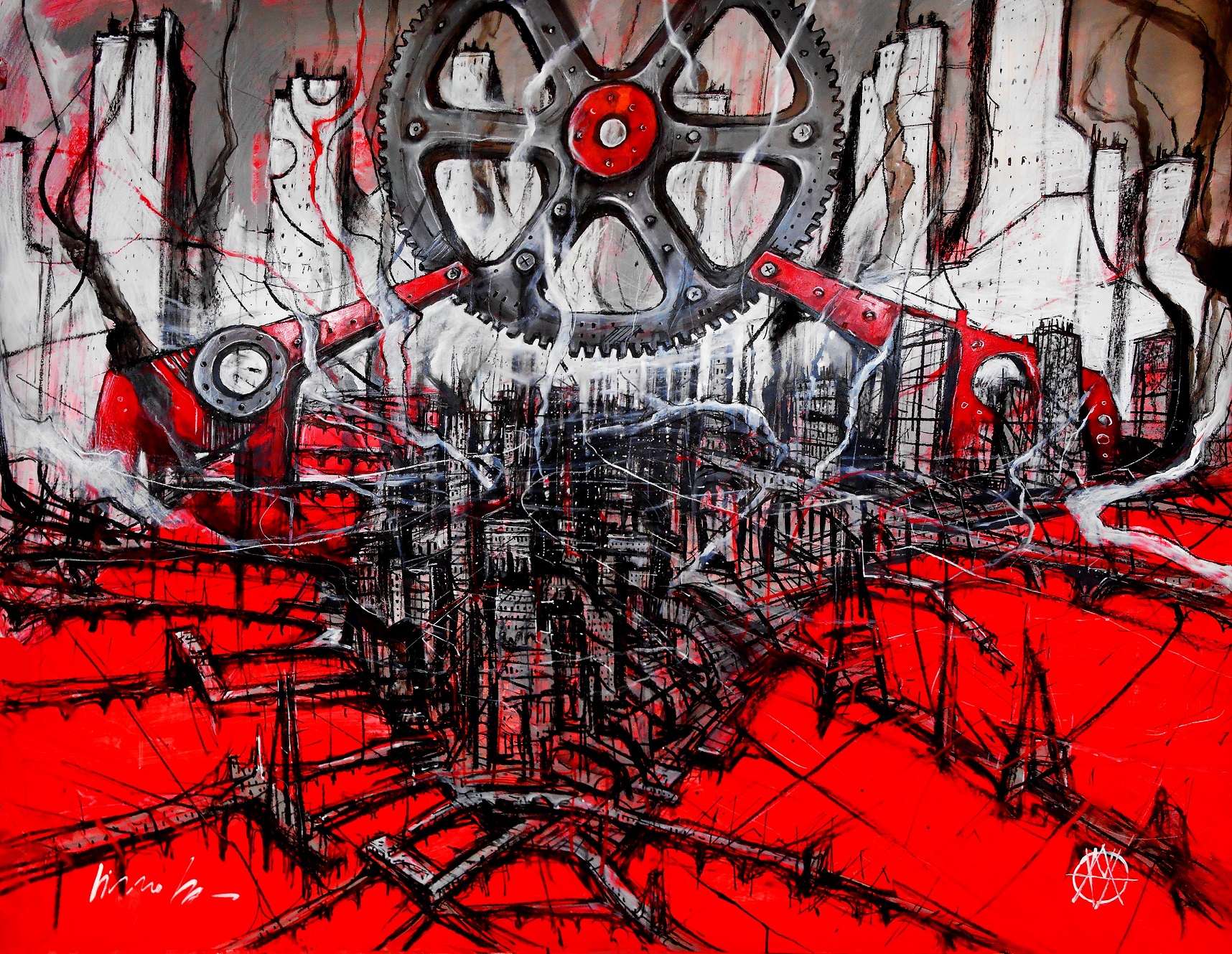 Come nel film Metropolis di Fritz Lang, del 1927, che ci racconta la città del 2026, governata dal potere dell'industrializzazione che annienta ogni sentimento umano, dove un androide dalle sembianze femminili ispira alla rivolta, le città di Vona sono animate da Androidi BioUmani, che vediamo o ne percepiamo la presenza, che diventano contemporanei supereroi in un contesto urbano caotico e futuristico. Le scene di Vona sono dei set cinematografici dove il "reale" dialoga con la "visione" di un futuro che appare oggi ai nostri occhi sempre più presente e attuale. Ogni lavoro di Virginio Vona è un chiaro manifesto che attraverso il linguaggio della pittura, del disegno, del fumetto, della grafica e dell''illustrazione ci invita a prendere posizione e a non restare immobili spettatori.