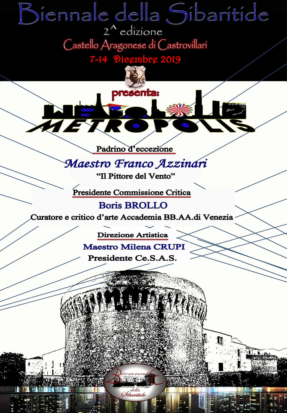 Biennale di arti contemporanee al Castello Aragonese di Castrovillari dal 7 al 14 dicembre presentata dal prof. Boris Brollo. Patron d’eccezione Maestro Franco Azzinari, pittore del vento; Milena Crupi, maestro d’arte e direttore artistico. Partner ufficiale Liceo Artistico Patrocinio Regione Calabria