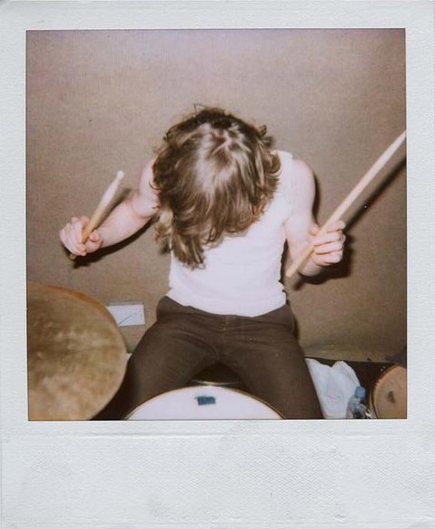 Osvaldo Sanviti (Nato a Pistoia, vive e lavora a Firenze): Drumming 2009, serie di stampe inkjet a colori, cm 21x29. L’immagine è quella di un ragazzo che suona la batteria che, preso dalla concitazione dei movimenti, ci mostra, nel reclinare la testa, solo la sua capigliatura. Il contesto diviene quel gesto di eterna ribellione e indice di giovinezza. La sequenza è composta da una serie di quattro fotografie che ripropongono la stessa immagine, una polaroid trovata su inernet, che perde colore e nitidezza via via che viene stampata e scansionata nuovamente. Le immagini sembrano tutte uguali e tutte diverse come il ruolo impersonato dal ragazzo ritratto.