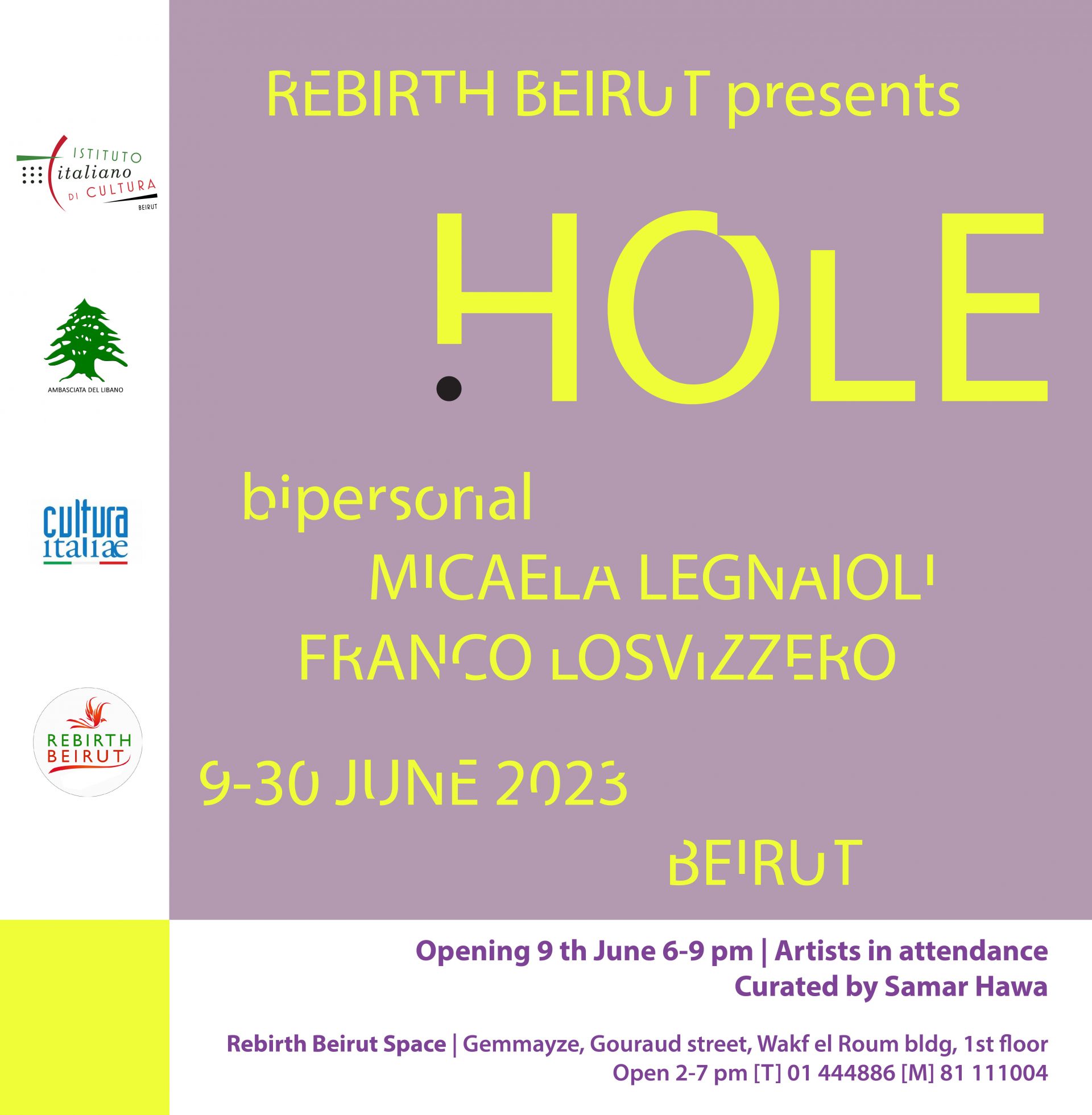 *Ci sarà un incontro con gli artisti all’Ambasciata del Libano a Roma successivo alla data di apertura della mostra, in data da definirsi. Per aderire scrivere una email all'Ufficio Stampa: denicola.arianna@gmail.com