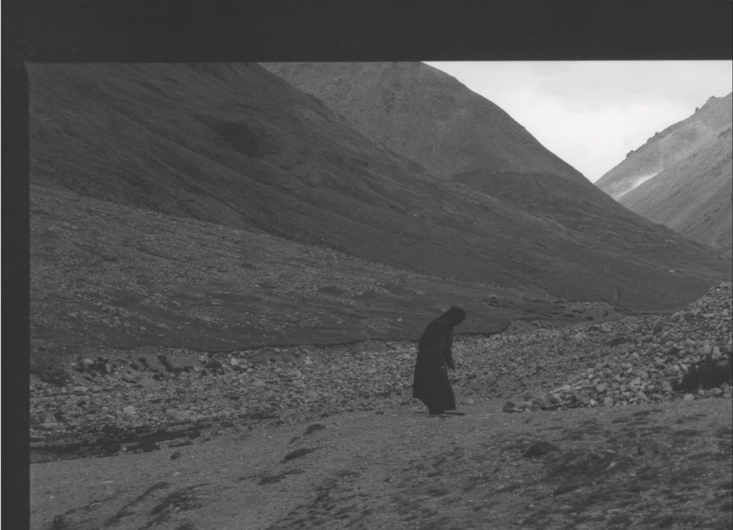 Il terzo giorno, alla mattina presto, ho iniziato a seguire una donna nomade coperta da un enorme cappotto di pelle foderato di pelliccia che trasportava una piccola borsa. Camminando veloce toccò alcune formazioni rocciose e lasciò scorrere le dita tra i pochi cespugli lungo la strada.