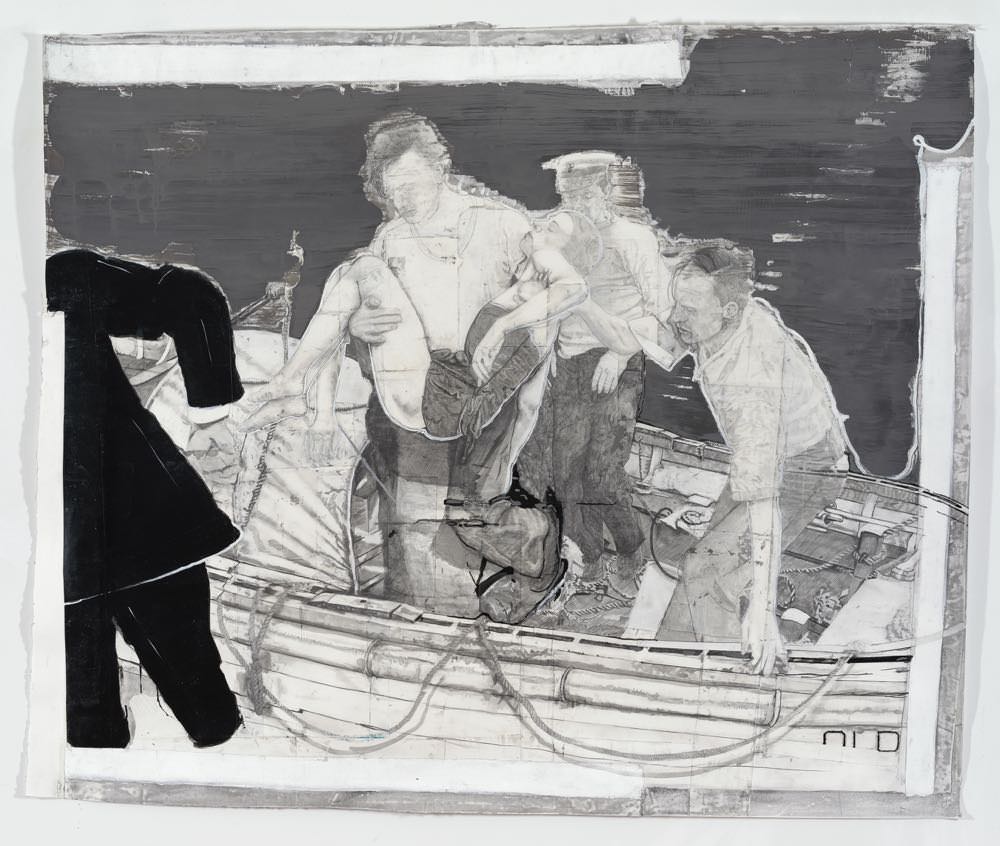Piuttosto che ritrarre memorie personali o testimonianze culturali inventate, Ryan sceglie un'immagine già esistente e la investe di significato attraverso il disegno. L'atto inconscio di raffigurare un dettaglio che in una fotografia è sfocato o oscurato - una cravatta stropicciata, una manica gonfia, un'espressione scettica - diventa per lui un modo per interpretare. Il disegno, insiste Ryan, ha il suo metodo di codifica e decodifica, distinto da ogni altro media, e l'informazione fornita da un disegno deve essere accettata per quello che è. “Non c'è alcuna storia dietro l'immagine. Piuttosto, la storia è creata attraverso l'immagine”, come ci racconta Nova Benway nel testo in catalogo che accompagna la mostra.