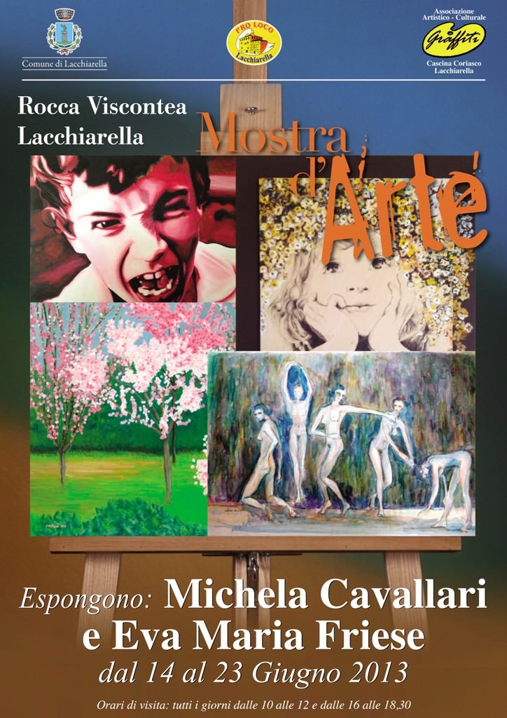 Due personali delle due vincitrici del concorso “L’altra parte del cielo: la donna oggi essere di luce e di vita” del 25.11.2012, la giornata internazionale contro la violenza sulle donne, alla Rocca Viscontea di Lacchiarella (MI).