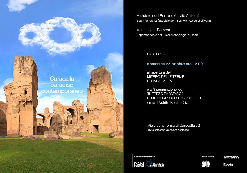 l’apertura al pubblico del mitreo delle Terme di Caracalla e l’inaugurazione dell’opera di uno dei più grandi artisti italiani: “Il Terzo Paradiso” di Michelangelo Pistoletto.