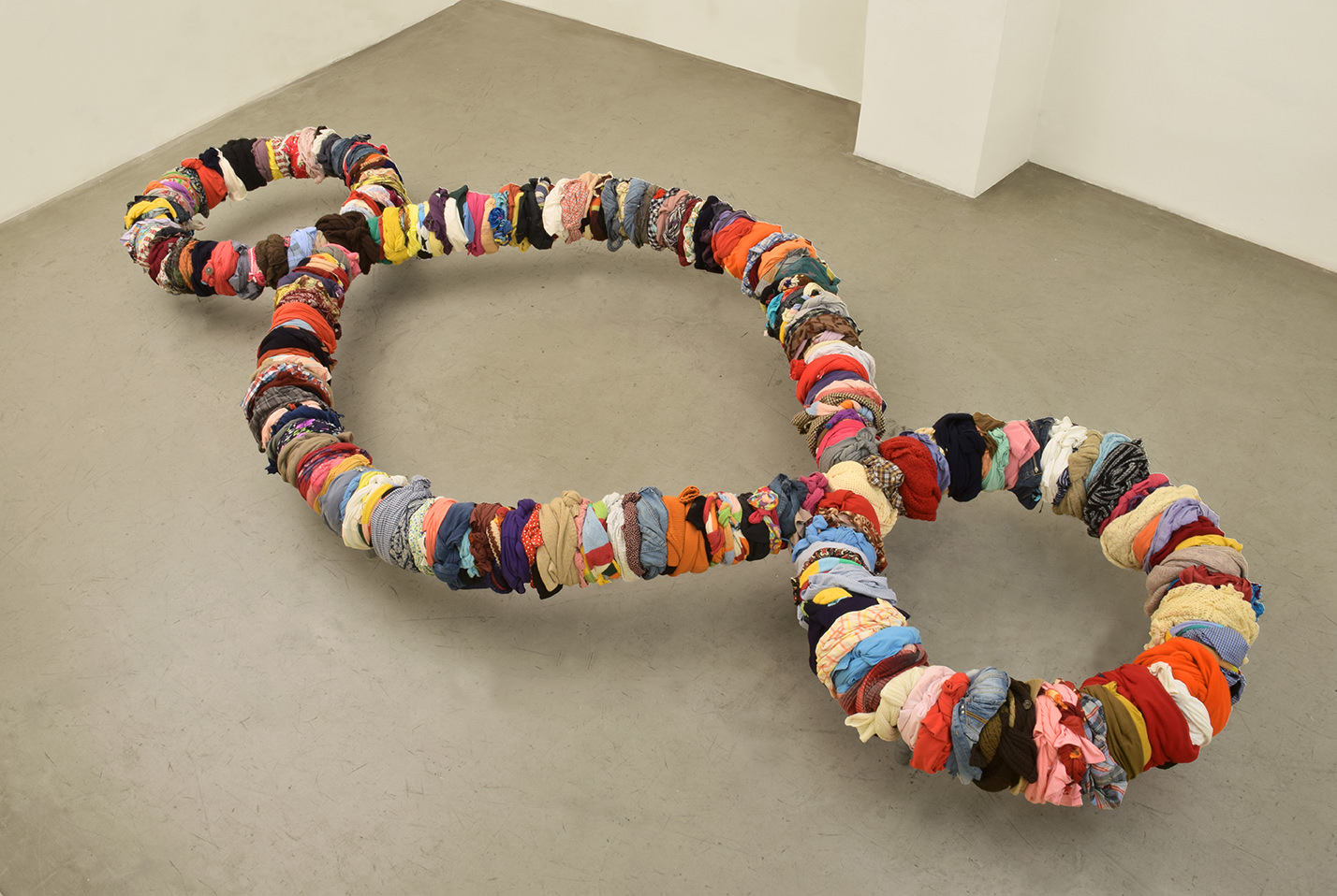 Per il racconto, siamo partiti dalla straordinaria esperienza del Terzo Paradiso, punto d'arrivo nella poetica pistolettiana. Nella prima sala accoglie il visitatore il Terzo Paradiso fatto di Riuso pistoiese, un'opera collettiva realizzata dalle donne della cooperativa sociale Manusa, che hanno tagliato, aggiustato e ricomposto i nostri panni usati, per un lavoro unico e importante unica. auguriamo diventi nuovo simbolo della nostra città.