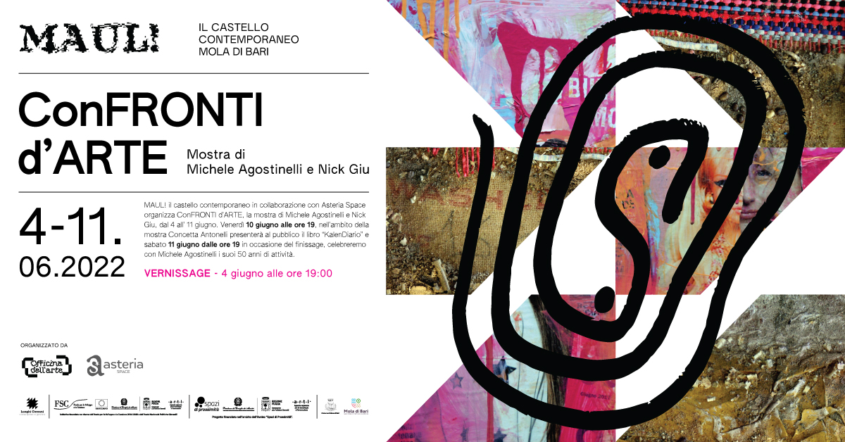 ispirato ConFRONTI d’ARTE – Mostra di Michele Agostinelli e Nick Giu, dal 4 all’11 giugno al MAUL! – Il Castello di Mola di Bari