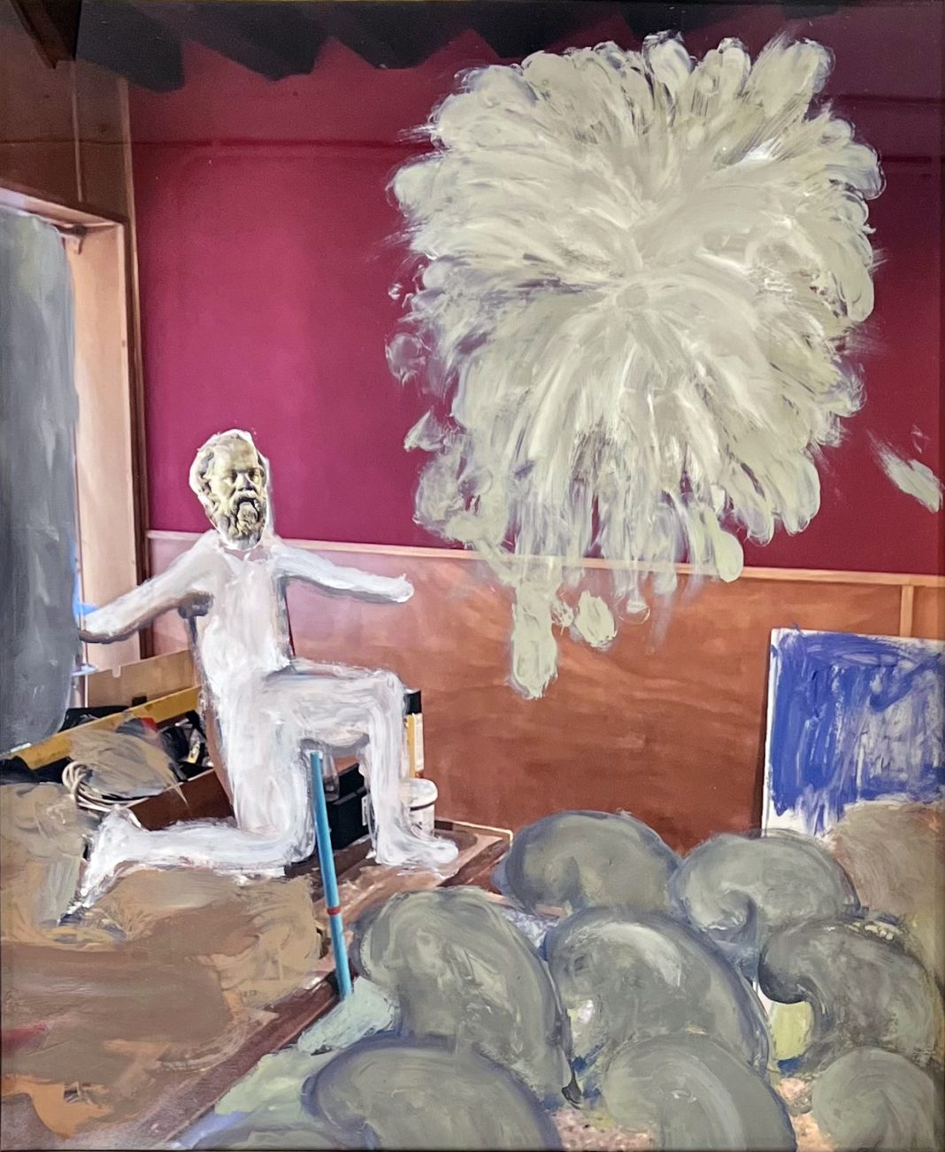 con un senso di ironia e gioco, oscillando costantemente tra spontaneità e intenzione, trasformandole in espressione artistica. Questo processo si dispiega come uno stato di perpetuo divenire: ciò che l'artista inizialmente immagina all'inizio della creazione spesso si trasforma in qualcosa di inaspettato attraverso un dialogo organico con immagini ossessive e la natura autorealizzante dell'atto pittorico stesso.