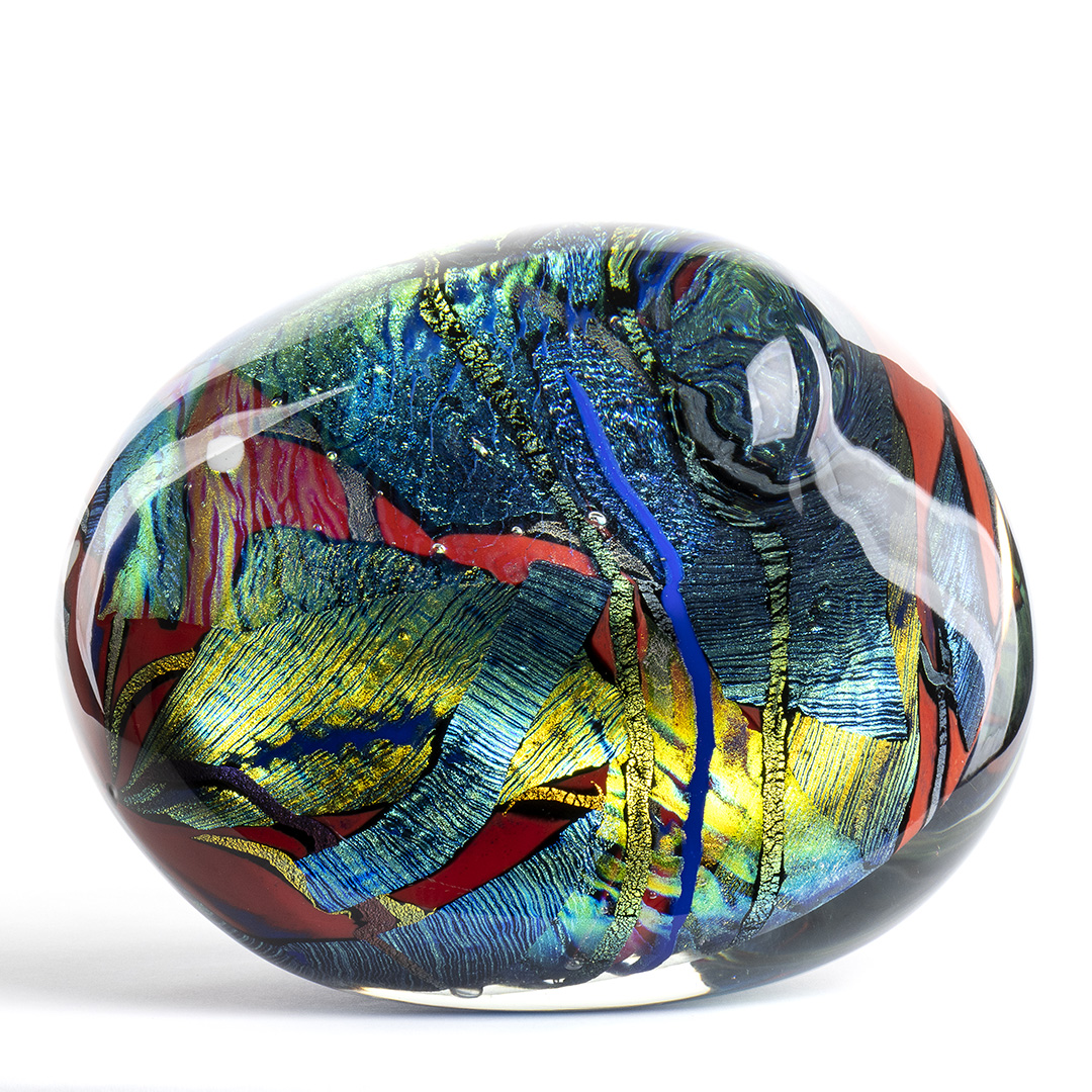 La pratica artistica di Michele Burato inizia alla fine degli anni ’80, quando, dopo una lunga frequentazione dei vetri artistici di Murano del Novecento, viene affascinato dalla bellezza di sezioni di vecchie canne a murrine, con cui sperimenta la creazione di piastre policrome dalla trama unica e insolita.
