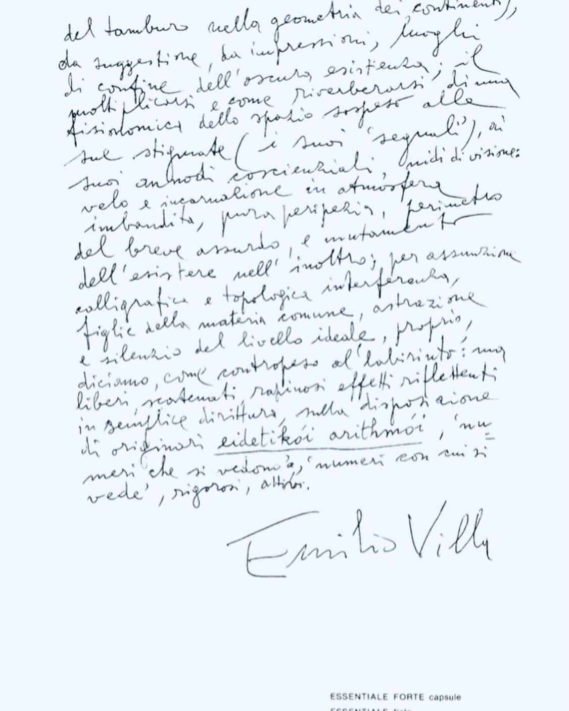 La mostra ripercorre, dagli anni '70, alcuni dei cicli pittorico-plastici dell'artista, esemplari dell'intuizione anticipatrice della sua ricerca sullo sconfinamento fisico e psichico dello spazio come luogo omogeneo. La sua, singolarissima, riflessione sulla determinazione della linearità della superficie piana, sullo spessore della tela e la natura della luce e del colore: in particolare, sulla funzione genetica del triangolo goethiano (nei suoi rapporti intensivi tra primitivi e binari) e sulla combinatoria strutturale, deduttiva degli opposti sul cerchio cromatico (i rapporti complementari), a partire dalla quale, Cossyro ha organizzato un diagramma poetico e un codice pittorico, il cui approdo è il superamento della bidimensionalità della pittura nella tridimensionalità reale dell'oggetto-ambiente. Immagini costrette in angolo retto, aggettanti superfici specchianti poi disperse in frantumi, ricomposte e arrotolate, nascoste. Come le celebri fisarmoniche, che accolgono e nascondono in sé un potenziale trans-spaziale e temporale, che sorvola la struttura stessa; circuito perverso dove la pittura si riflette e convive con la formazione di un’immagine reale - colui che guarda – che si riflette nell’immagine ottica allo specchio, la cui virtualità è subito cancellata dal ritmo perverso di un doppio immediato, consecutivo, simmetrico e simultaneo. Duplice movimento di liberazione e cattura che contrae e dilata le immagini al contempo, indiscernibilità organizzata che assorbe e ricrea il suo oggetto, fisico e psichico, in un’alternanza di limpido e opaco, luce e ombra, superficie e riflesso, attuale e virtuale. Genesi e struttura. Mirabile dispositivo in cui il quadro abdica alla sua realtà spaziale captando una sintesi del tempo. Fisarmoniche cui questa mostra rende particolare omaggio con una prossima pubblicazione, che celebra, da loro ispirato, e i quarant'anni dell'autografo di Emilio Villa (dicembre 1984), e l’edizione a cura di Ezio Pagano della mostra del marzo 1985 a Bagheria, a cura di Palma Bucarelli ed Emilio Villa, con l’integrazione di un testo di Filiberto Menna e di Bruno Corà.