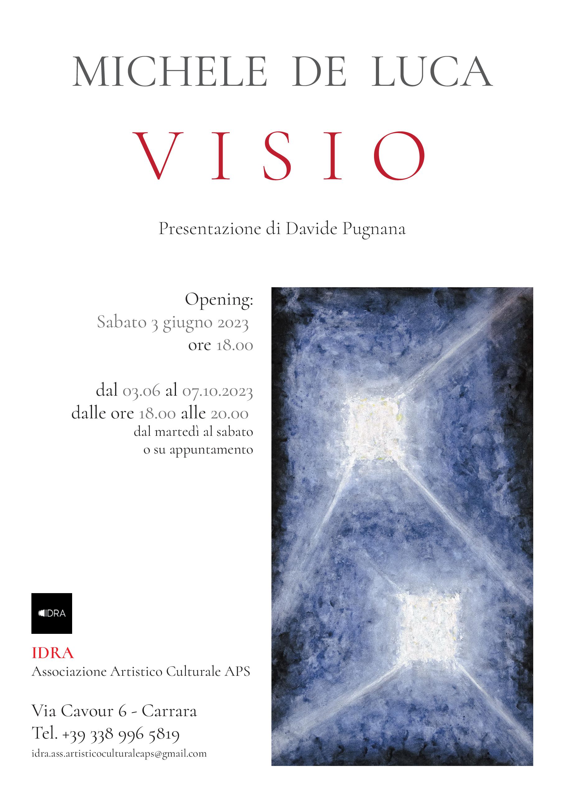 Sabato 3 giugno 2023, alle ore 18, nello spazio della galleria d’arte IDRA di Valeria Lattanzi si apre VISIO la mostra personale dell’artista Michele De Luca, da quarant’anni personalità di spicco dell’arte contemporanea