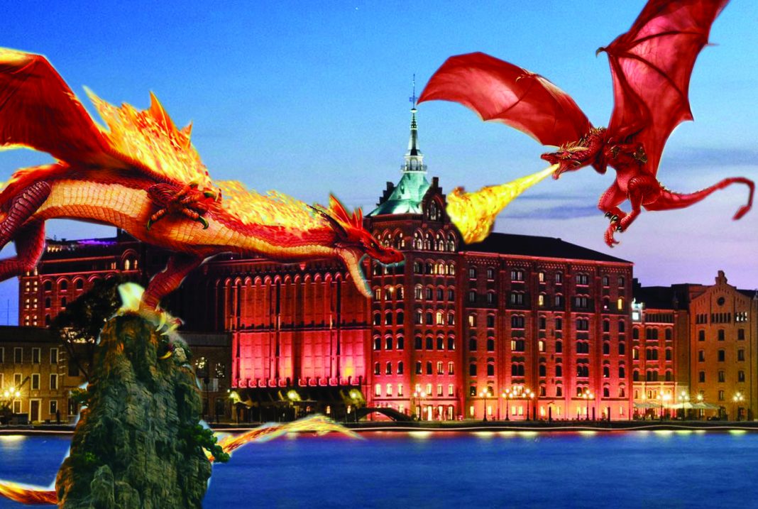 I veri protagonisti sono gli animali: dinosauri marini, rane, orsi, draghi ed elefanti, solo per citarne alcuni, sono inseriti all’interno delle cornici a noi ben note da Piazza San Marco, lungo il Canal Grande al Ponte di Rialto.