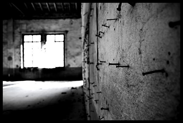 Tinte dai toni inimmaginabili riemergono rivitalizzate da una scintillante lama di luce penetrata da un'apertura, mentre ancora rieccheggia il suono di faticose parole urlate per sovrastare il frastuono; mentre, percorrendo i padiglioni degli ex ospedali psichiatrici, il silenzio diventa assordante, invaso da ancora strazianti eco di urla e lacrime di chi vi trascorse la vita.”