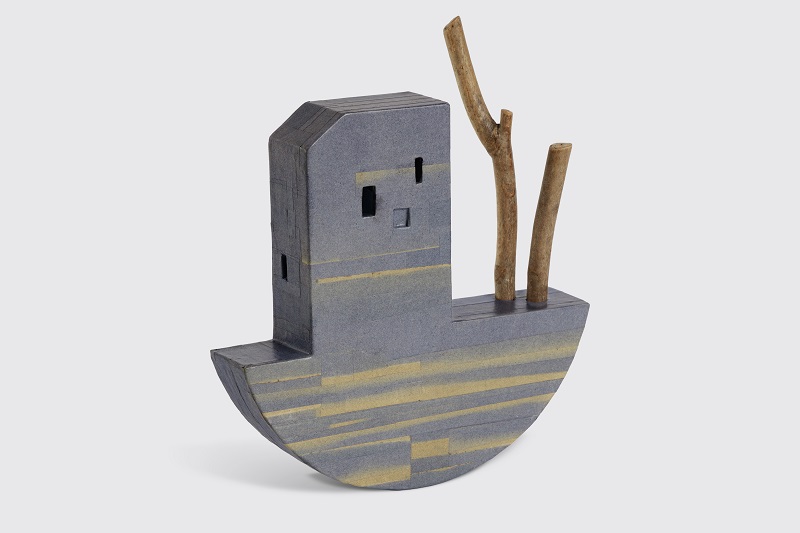 Espressione plastica che rimarca i propri confini in uno spazio ben definito. L'artista gioca creando solidi geometrici dalle forme pulite ed essenziali e da pochi colori, dai freddi toni di grigio, ai colori caldi delle terre. Nella veste di architetto progetta e costruisce piccole case, fortezze, templi. Architetture con piccole porte e piccole finestre, talvolta senza le une e le altre.
