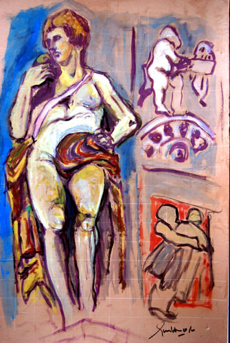 Scrive Carlo Franza: “Personalità dominante quella di Michele Giannattasio, artista e figura rappresentativa dell'arte italiana del secondo novecento, che ha vissuto e vive ancor oggi il tormento della creazione, l'ansia, la fatica morale e materiale a motivo dell'ingegno manifesto, avendo scandito artisticamente capitoli di grande espressività organizzati fra sacro e profano. In questa mostra milanese vivono oltre una decina di cartoni di grande formato rispetto agli oltre quaranta elaborati dall'artista intorno alle statue del Duomo di Milano. Veri capolavori, sentinelle del cielo, che rappresentano i santi che svettano su uno dei monumenti gotici più eccelsi della storia dell'arte umana. Michele Giannattasio in questi ritratti di santi a misura d'uomo elaborati con un segno nitido,uno studio analitico, una semplificazione e purezza delle forme aristocratiche, una sottile vibrazione chiaroscurale, eppoi una padronanza, sicurezza e correttezza della figura umana, tanto che la pittura pare andare verso il rilievo, rivela una visione d'insieme non comune. Questi ritratti di santi sono frutto di una sua complessa e ricca cultura, vivono spunti episodici, scene articolate nobili e grandiose specie nelle bellissime figure dalle vesti gonfie, dai gesti lenti e naturali, dai volti pervasi da un'aristocratica malinconia, e infine tutto stemperato in una sfumata morbidezza. I colori crudi e freddi, poco variati e in tonalità basse, contribuiscono a valorizzare il disegno fermo ed energico, proprio perchè tutto è subordinato all'evidenza plastico-volumetrica dei corpi, delle vesti e degli attributi che si devono ai santi. Figure in movimento, positure ardite e difficili, scorci e torsioni mai visti, tensione di forze, masse che danno vita e movimento alle composizioni, senza privarle di ordine e armonia, principi massimi della bellezza. Il bello e la grande novità sono che l'artista ha rifiutato l'iconografia tradizionale, per valorizzare la forma che diviene essa stessa specchio dell'anima, simbolo di potenza, grandezza, divinità. Semplicità e verità infondono spirito divino al sentimento umano che pure traspare dai cartoni con violenti contrasti di luci e di ombre, vera scuola del mondo. Una maestria superba quella di Michele Giannattasio che ammorbidisce e sfalda i contorni delle figure dei santi del Duomo rappresentati, tanto da risultare così quasi immersi nella fluida atmosfera”.