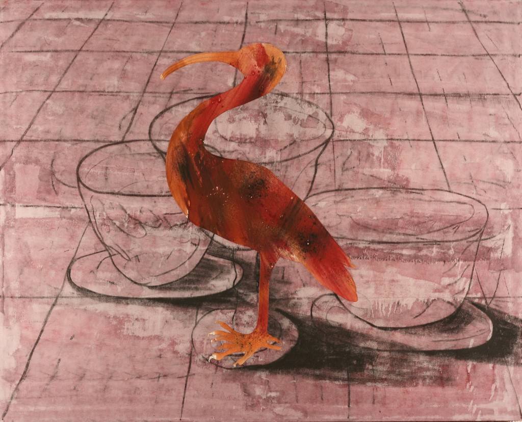 In mostra una sessantina di opere pittoriche, tra cui alcune realizzate side specific, che ripercorrono l’arco della sua intera produzione, individuando tra le due diverse sedi, alcuni temi di ricerca, che indicano personali direzioni di cammino artistico per le quali si è parlato di “neoplatonismo” ma anche di “umanesimo” e a proposito di alcune grandi tele recenti di “visionarietà padana” che, dalla lezione informale, torna ad approfondire gli aspetti più lirici e soggettivi del naturalismo, mentre la scrittura minuta di alcuni dei suoi sfondi sembra rievocare il clima degli automatismi psichici di André Masson.