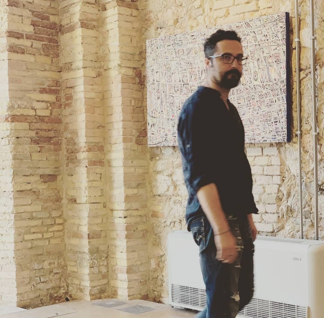 Michele Omiccioli, nato a Fano nel 1981, rappresenta una delle voci più interessanti nel panorama artistico contemporaneo italiano. Dopo la laurea in Lettere moderne, Omiccioli ha intrapreso un percorso artistico da autodidatta, sviluppando una ricerca personale influenzata dall'espressionismo astratto americano, dall'informale europeo e dal graffitismo urbano, con una particolare folgorazione per l'opera di Jean-Michel Basquiat. La sua produzione artistica si è evoluta parallelamente all'attività di scrittura, testimoniando una poliedricità intellettuale che si riflette nei molteplici stili e approcci che caratterizzano la sua pittura.