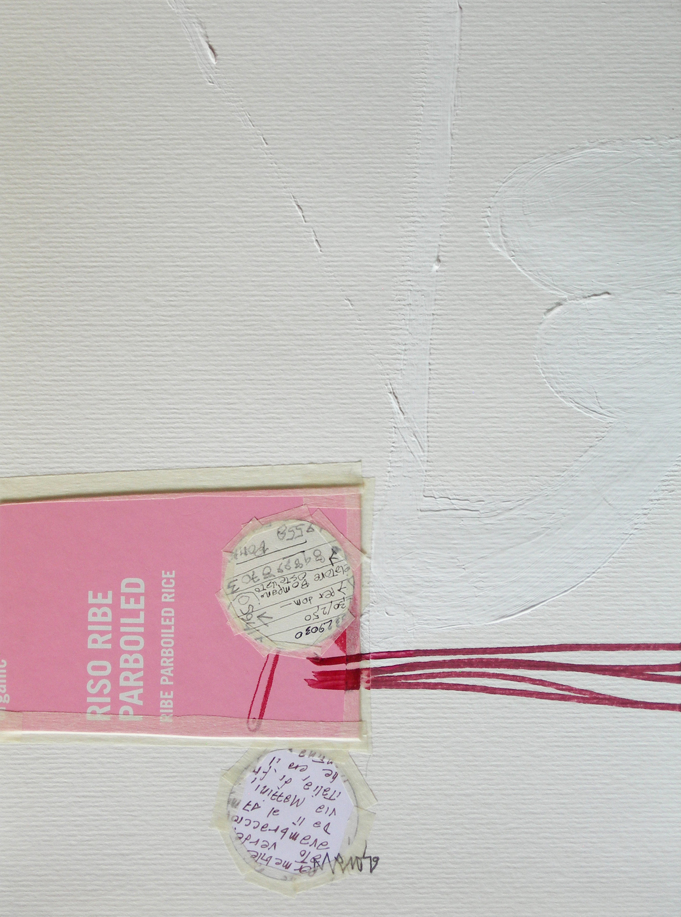 L’esposizione raccoglie la più recente produzione dell’artista ferrarese, consistente in una trentina di lavori su carta (collages e tecnica mista) perlopiù di piccole dimensioni. Segno e colore trasfigurano e trascendono immagini classiche e reperti della pubblicità appartenenti al quotidiano.