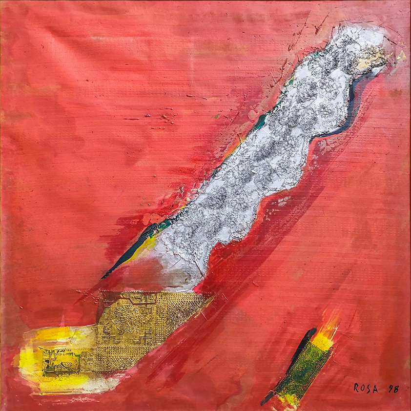 Le opere dell’artista Michele Rosa si pongono in intimo dialogo con gli spazi dell’edificio conventuale in un confronto tra contemporaneo e austera mistica solennità. L’esposizione rappresenta un’occasione di riflessione sull’arte visuale contemporanea in relazione all’architettura conventuale del XIII secolo, favorita dal silenzioso luogo meditativo eugubino. La mostra si compone di due sezioni tematiche: "astrazione materica" e "astrazione plastica", serie realizzate tra il 1997 e il 2016. Un’arte non propriamente informale che incentra la ricerca sulla creazione di strutture e forme libere, frutto dello studio di equilibri cromatico-formali, in grado di esprimere concetti ed emozioni. Sono tele distanti dalla pura ricerca gestuale e del mero gesto istintivo che conducono di volta in volta al caos oppure ad una sintesi più minimalista. L’evento si tiene nel luogo ove affondano le radici della lontana ascendenza dell’artista e si inserisce nell'iter preparatorio in vista della grande mostra antologica che avrà luogo nel 2025 nella città natale, Sora, in occasione del centenario della sua nascita.
