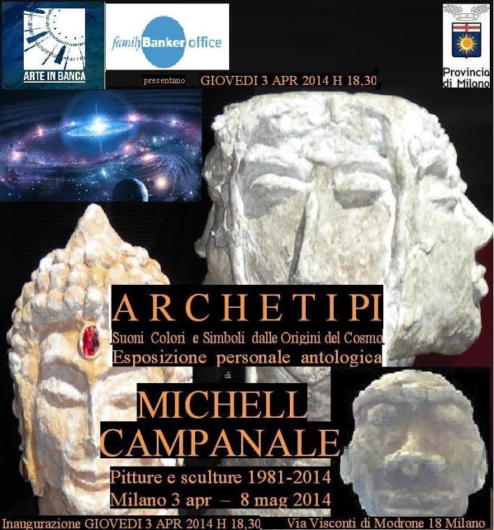 Si inaugura a Milano giovedi 3 aprile 2014 H 18,30, con conferenza stampa a partire dalle h 12.00 (e a disposizione stampa fino alle h 18,oo) la personale del maestro d’arte Michell Campanale, che esporra’ un’antologia delle proprie opere d’arte, a partire dal 1981 a tutt’oggi, negli spazi espositivi di “Arte InBanca – Family Banker”del Gruppo Mediolanum, siti in via Visconti di Modrone 18 a Milano, proprio nel cuore della metropoli meneghina, crocevia del pensiero artistico, filosofico e culturale internazionale.