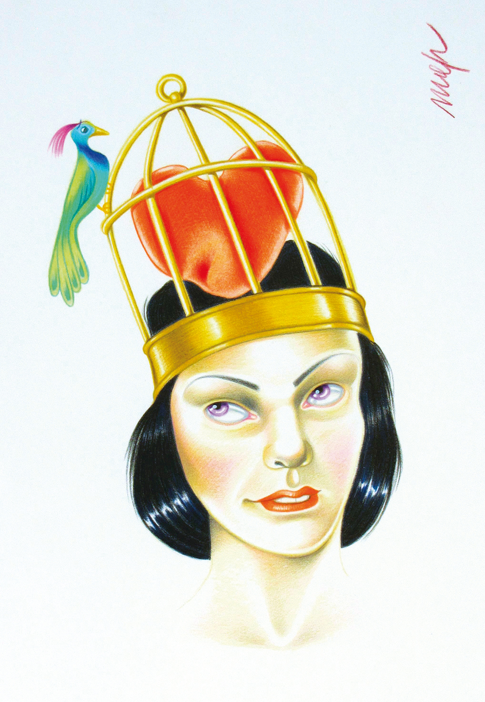 Il fil rouge tematico continua a snodarsi ed ecco giungere alla “Iconogioia”, la “Immagine della gioia”, che contempla opere che non alludono ad una situazione di gioia costante bensì a quei momenti in cui il desiderio si oggettiva, sia pure come tensione interiore. L’invito è a riguardare alla vita con animo sereno, proprio come auspicava Juno Sospita, la Dea protettrice di Lanuvio, il luogo natale dell’artista che d’ultimo lei ha voluto celebrare nel suo nome d’arte. Giunone Sospita, cioè Propizia, aveva a Lanuvio il suo più grande santuario, dove i fedeli andavano a prendere auspici sia personali sia collettivi, soprattutto riguardo alla fertilità della donna e dei campi. La dea, dal volto sorridente, non poteva mancare tra le tante donne immortalate dall’artista.