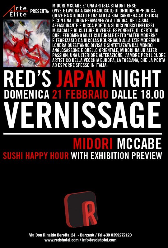 In concomitanza con un “Sushi happy hour” saranno esposte e messe in vendita opere dell’artista giapponese Midori McCabe con la presentazione artistica di Antonio Mansueto