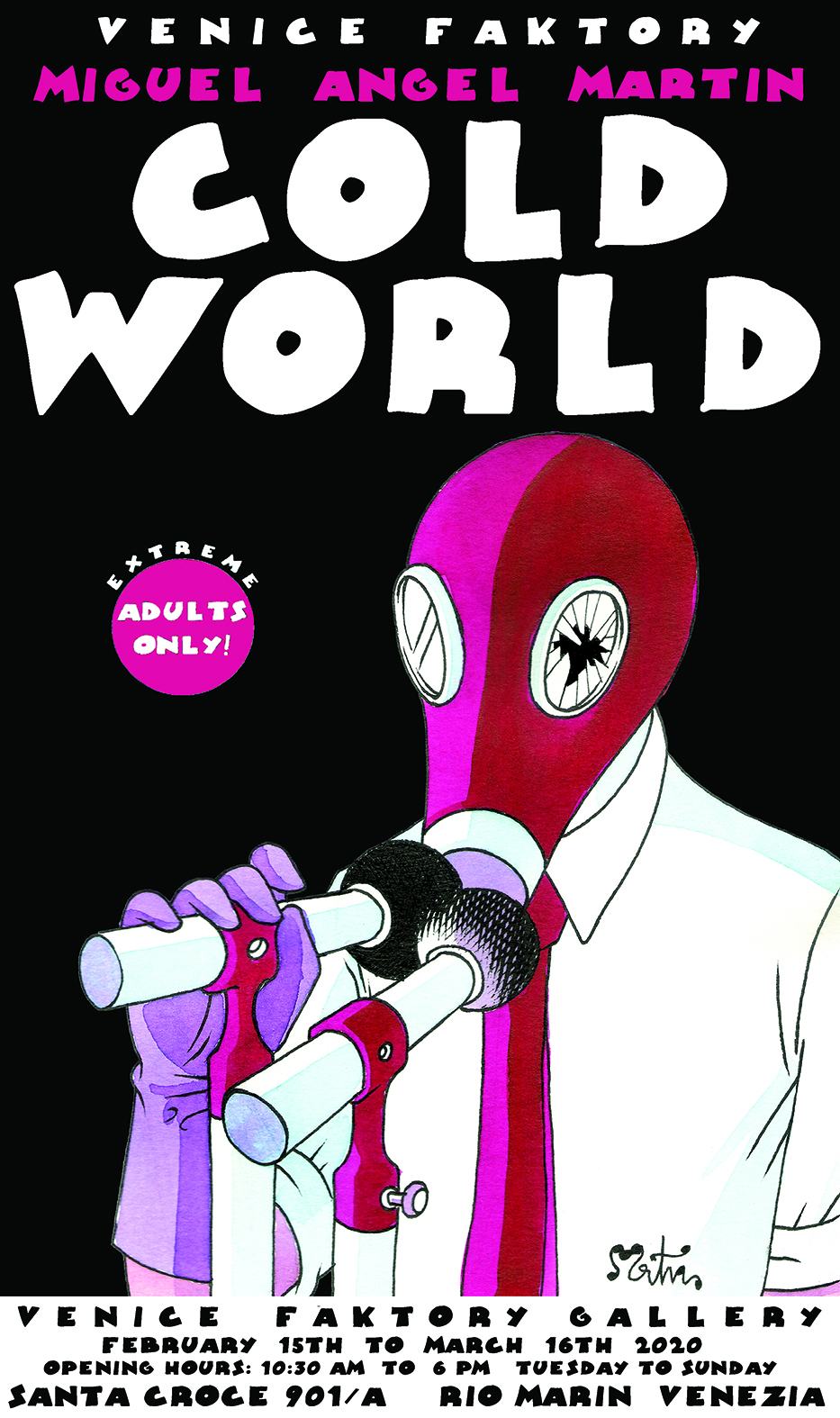 Artista di fumetti di culto dell’underground internazionale, profeta dell’umanità transgenica, Miguel Angel Martin espone nella galleria d’arte Venice Faktory, ”Cold World “ una preziosa raccolta di opere Cyber Punk .