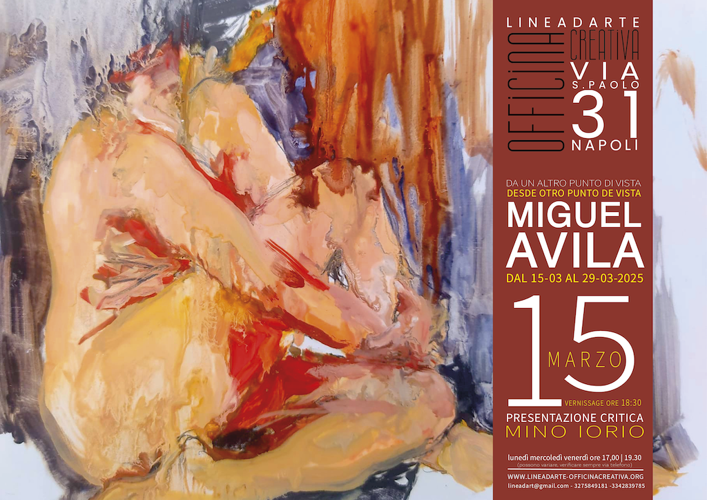 Inaugura sabato 15 marzo 2025 alle ore 18.30 presso Lineadarte Officina Creativa, isola creativa laboratorio della libere arti, via San Paolo, 31 Napoli, la mostra personale di Miguel Avila, dal titolo “Desde otro punto de vista - Da un altro punto di vista“ a cura di Gennaro Ippolito e Giovanna Donnarumma.