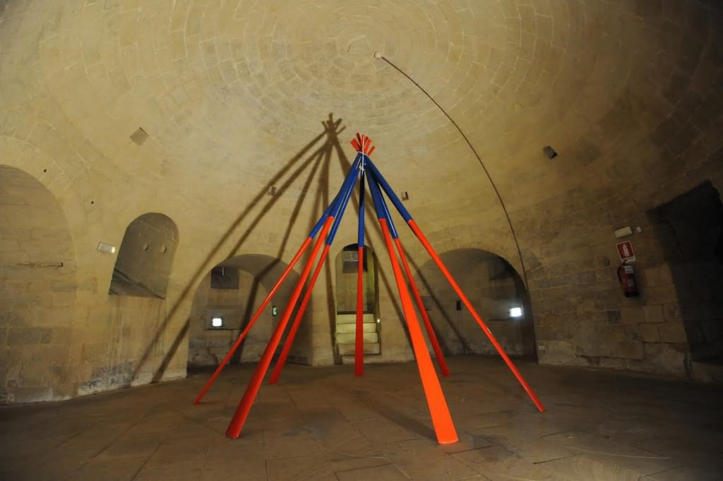 Con Indians, Miki dà vita a un percorso negli ambienti ipogei del castello, che invade con ironia dissacratoria e meditata, reinventando anche le stesse architetture e i percorsi possibili nello spazio della rappresentazione