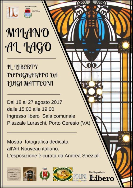 La mostra fotografica ''Milano al Lago'' è allestita nello spazio comunale in Piazzale Luraschi a Porto Ceresio (VA). Il pubblico dal 18 al 27 agosto 2017 potrà ammirare l’Art Nouveau milanese raccontato con 30 suggestive immagini fotografiche prodotte dal fotografo Luigi Matteoni. L'esposizione rientra nel calendario ''100 Sommaruga'', un programma di appuntamenti votati a celebrare l'architetto Giuseppe Sommaruga nel centenario dalla morte e centocinquantesimo dalla nascita che ha già prodotto sorprendenti risultati con una grande mostra allestita in tre location della Lombardia. Straordinaria l'apertura del Grand Hotel Campo dei Fiori per ''Giuseppe Sommaruga. Un protagonista del Liberty'' voluta e possibile grazie al curatore Andrea Speziali, esperto di Liberty, e stesso critico d'arte per la mostra personale di Matteoni in zona Varese. Essa propone scatti fotografici di rara bellezza che evidenziano il panorama Liberty in Italia nel racconto del viaggio culturale dell'autore all'insegna di ville e palazzi eleganti.
