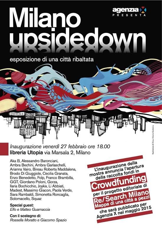 La città capovolta, il cielo al contrario, Milano a testa in giù. Sotterranei ricevono luce solare generando tsunami colorati, fiori mutanti, mostri spaziali, grattacieli che si scontrano, prospettive surreali e molto altro in oltre 25 opere di 25 illustratori milanesi che hanno immaginato una Milano sottosopra