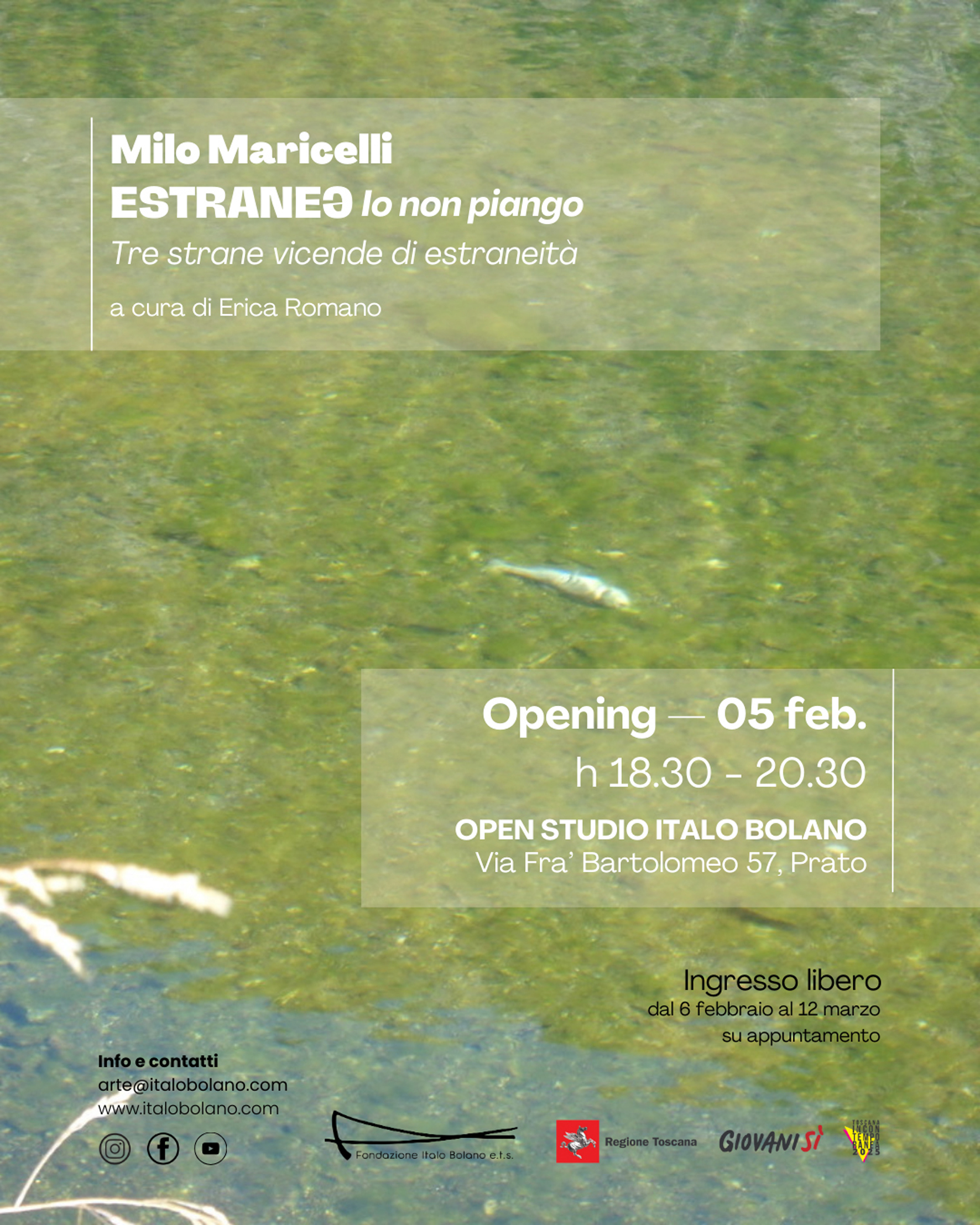Giovedì 5 febbraio alle ore 18.30 presso l’Open Studio Italo Bolano di Prato (via Fra’ Bartolomeo, 57) verrà inaugurata la mostra ESTRANEɘ Io non piango. Tre strane vicende di estraneità dell’artista Milo Maricelli (Bellinzona, Svizzera, 2000), terzo appuntamento del progetto ESTRANEɘ, a cura di Erica Romano, vincitore del bando Toscanaincontemporanea2025 della Regione Toscana – GiovaniSì.