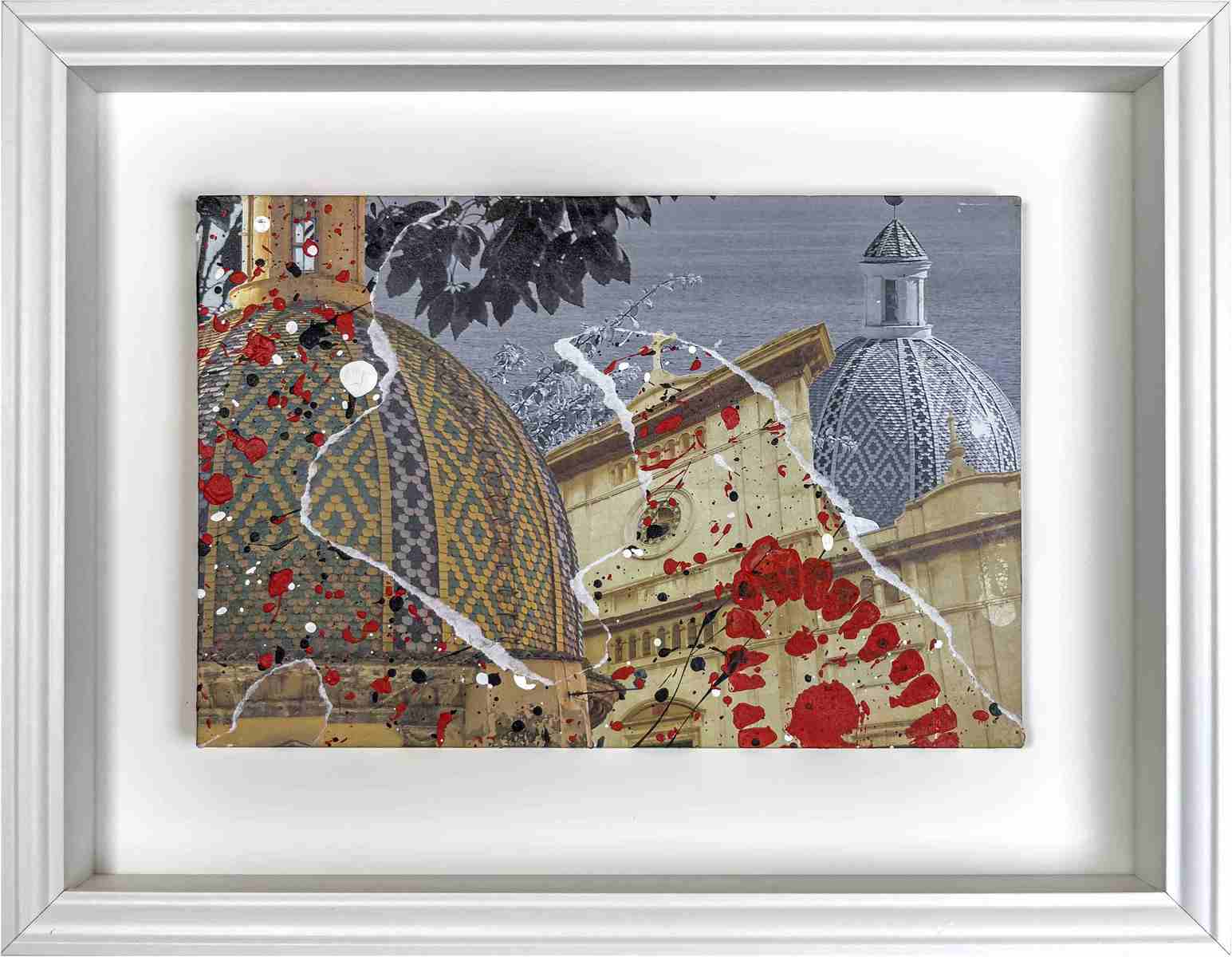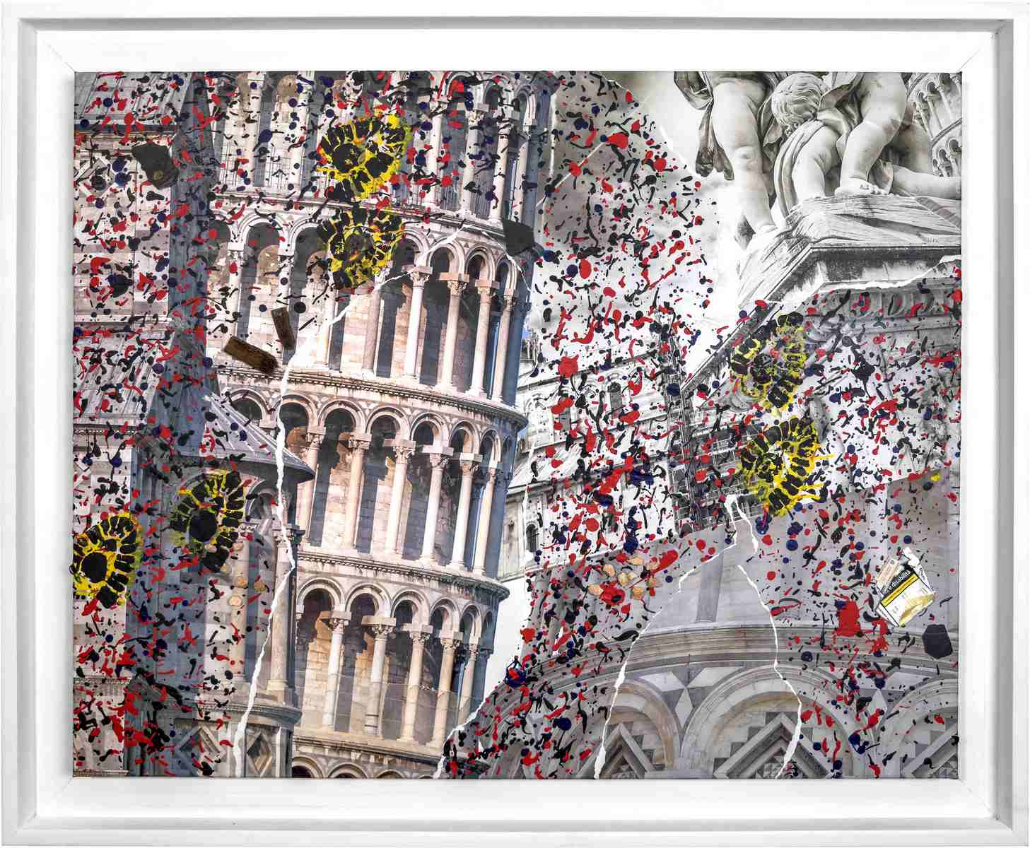 Al centro della tela sono presenti le immancabili orme umane sulle cose, una sorta di firma di Milo che così restituisce alla bellezza la pura essenza della contingenza. La tecnica utilizzata è mista: l’artista parte da una composizione delle diverse immagini del soggetto e ne produce dei manifesti unici, che applica poi su tela. Qui genera la ‘sfogliazione’. L’applicazione di oggetti di uso comune che abitualmente vengono abbandonati come residui di un consumismo becero completa il messaggio in chiave pop anni Sessata. Tre i colori tipici di Milo: il nero, a significare gli effetti dell’inquinamento sulle superfici, il rosso, ovvero la violenza gratuita inflitta dall’uomo con comportamenti vandalici o irriverenti, infine il bianco, l’inevitabile deterioramento che il tempo porta con sé.