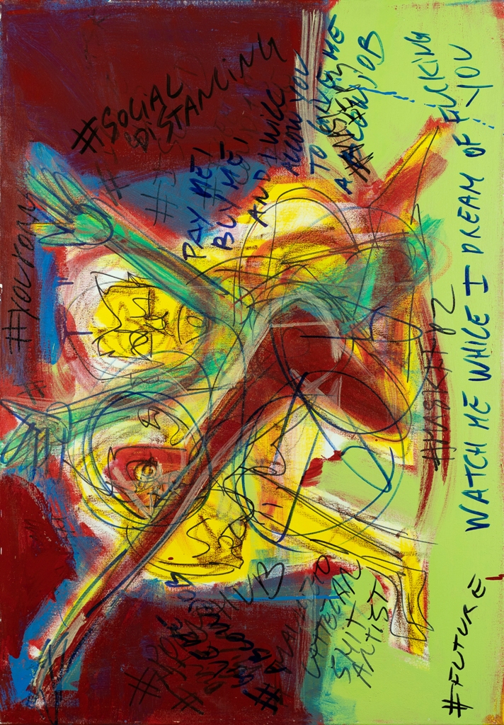 Le tre azioni di cui si sostanzia Social Distancing, presentate da un testo critico di Giancarlo Politi, storico fondatore di Flash Art, vanno lette come il naturale sviluppo del precedente intervento espositivo Lockdown/Social, allo scopo di sondare come stiano mutando i linguaggi dell’arte e come si stiano evolvendo le ricerche artistiche contemporanee al distanziamento sociale: “Lo scopo dell’intero progetto è misurare gli effetti collaterali del lockdown, effetti che hanno materializzato un ulteriore distanziamento economico, oltre che di classe sociale, un divario crescente tra chi dispone di moltissimi mezzi (economici, culturali e sociali) e chi ne ha sempre di meno. Il lockdown, prima, e il distanziamento sociale, poi, hanno impoverito il sistema dell'arte in tutto il mondo, ma in Italia, rispetto ad altri scenari europei, più che mai; non c'è stata nessuna azione di sostegno nei confronti di artisti e operatori culturali che ne intermediano il lavoro, allontanando l'arte contemporanea da un sistema socio-culturale con il quale dovrebbe vivere in naturale sinergia”. (Di Caterino).