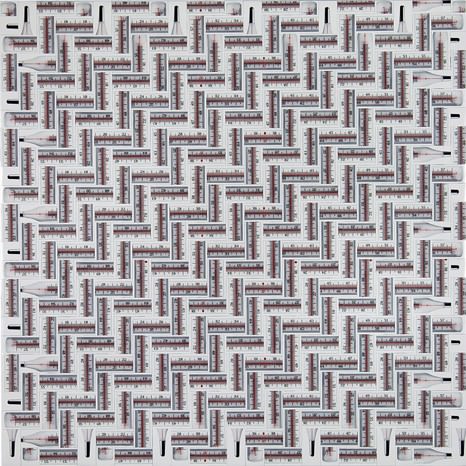 Un percorso di 40 opere inedite testimonia le principali tematiche del lavoro di Mimmo Iacopino; dai metri da sarto, ai velluti, ai fili moulinet in cotone, fino ai più recenti lavori nati da una continua ricerca e dallo studio maniacale del colore.
